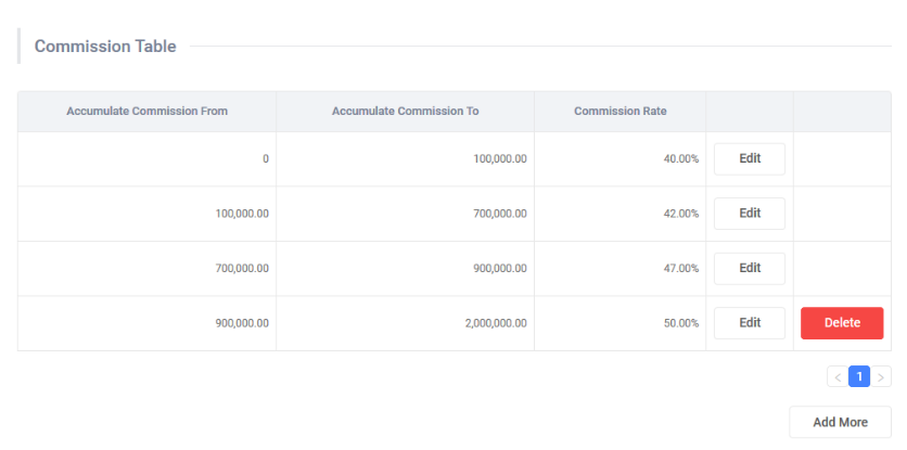Regarding to flexible business logic, Softverk provided editable agent commission distribution table. The table will assign commission rate compare with accumulate commission from previous performance of each agent.